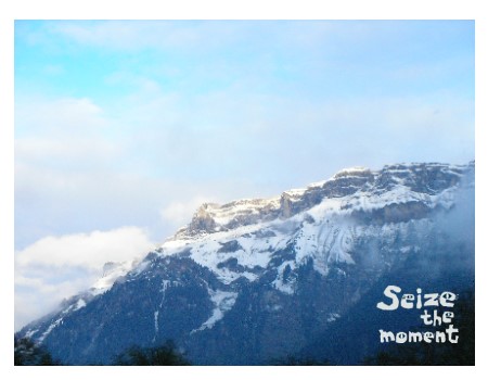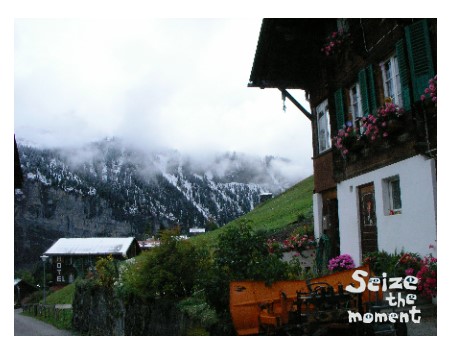 回到Interlaken的時候,遠方山頂的雲霧終於散開了。說不定明天就可以上少女峰了耶!好期待喔!
